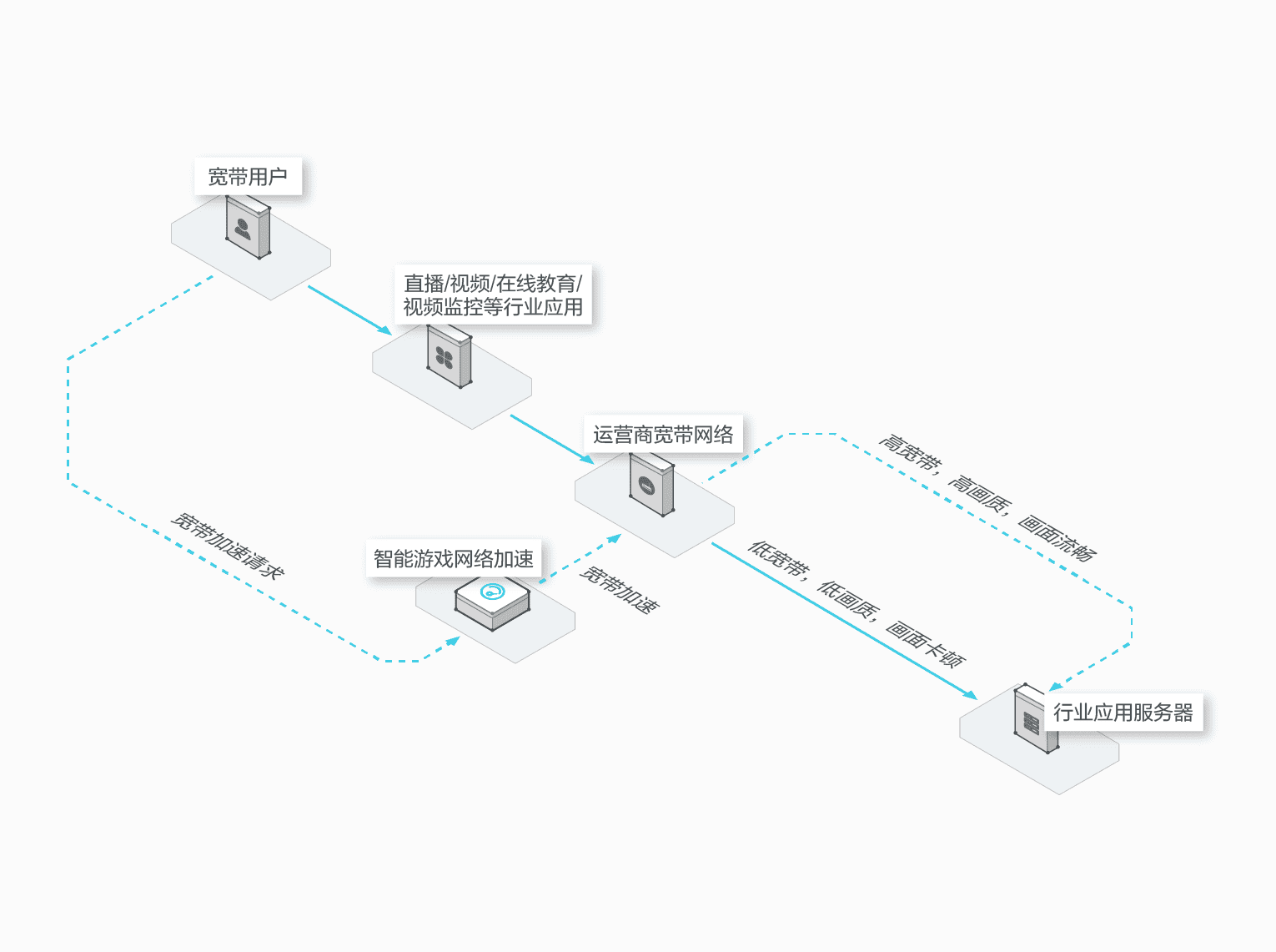 云通信網(wǎng)絡(luò)加速服務(wù)協(xié)同網(wǎng)絡(luò)運(yùn)營(yíng)商的網(wǎng)絡(luò)加速能力和可用空閑帶寬,為應(yīng)用按需提供有效的帶寬和速率提升,降低端到端時(shí)延,提高應(yīng)用在運(yùn)營(yíng)商網(wǎng)絡(luò)內(nèi)的QoS,適用于游戲、直播、在線教育、視頻監(jiān)控、文件上傳以及點(diǎn)播等場(chǎng)景。