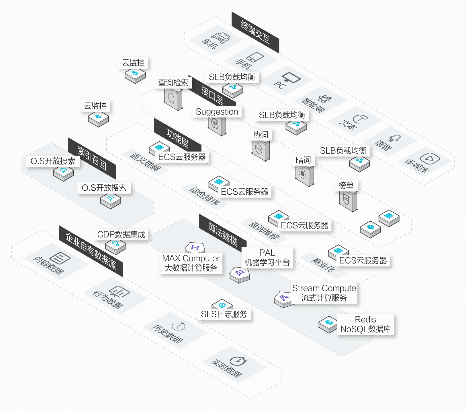 多模式輸入的先進架構體系,提供跨域、垂直的自然搜索結果及商業(yè)化變現(xiàn)能力,支持廠商自主數(shù)據建立索引。