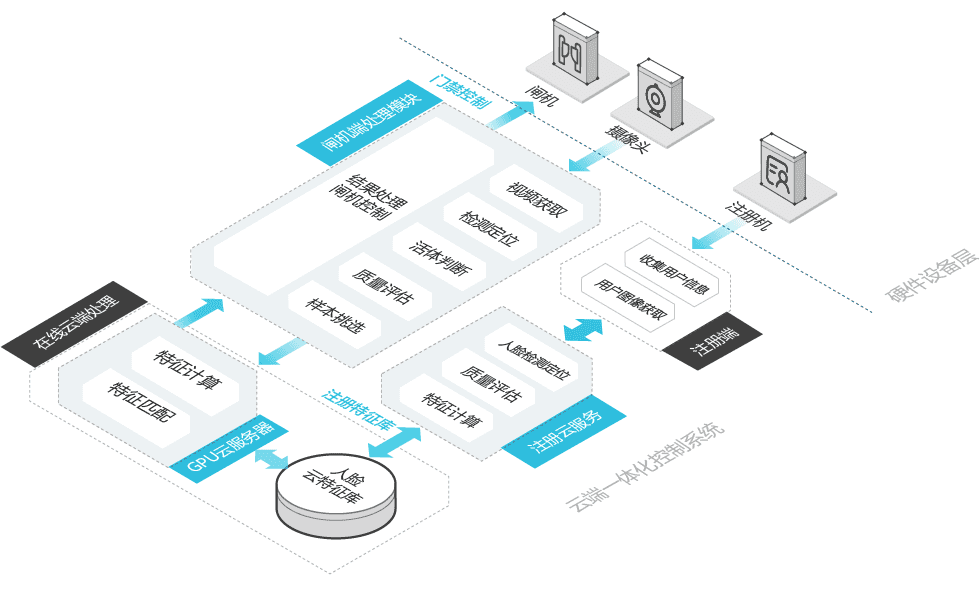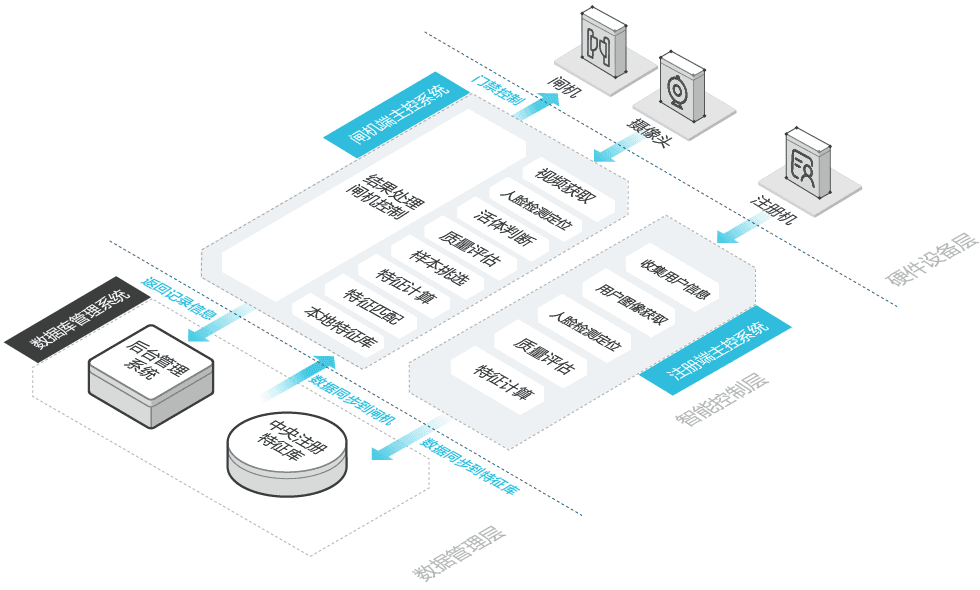 基于1:1或1:N的人臉身份驗證,結(jié)合門禁盒子、閘機(jī)等硬件設(shè)備,實現(xiàn)刷臉過閘、樓宇訪客管理等應(yīng)用場景下的軟硬件一體化系統(tǒng)解決方案。