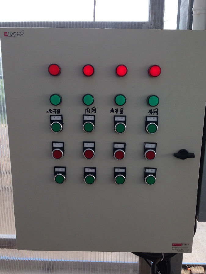 為了現(xiàn)場(chǎng)工作人員的便捷操作,在育苗中心配備了控制箱,可在現(xiàn)場(chǎng)集中控制育苗中心的各種設(shè)備。