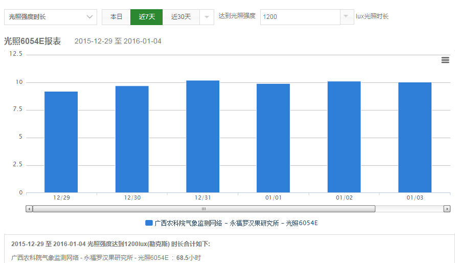 利用空氣溫度傳感器、空氣濕度傳感器、光照度、降雨量等傳感設備實時監(jiān)測羅漢果種植的氣象環(huán)境。實時監(jiān)測的環(huán)境情況數(shù)據(jù)每隔10秒鐘就上傳到“天潤智力智慧農(nóng)業(yè)云平臺”,羅漢果研究人員只要登錄手機APP或者在電腦上,就可以遠程隨時隨地查看羅漢果種植園區(qū)的各項關(guān)鍵數(shù)據(jù)。所采集的數(shù)據(jù)實時上傳到天潤智力智慧農(nóng)業(yè)云平臺,并快速進行統(tǒng)計分析,解決了科研人員對數(shù)據(jù)的采集分析需求,并確保了數(shù)據(jù)采集的精準、快速。且在云平臺報表中心,研究人員可以隨時調(diào)取任何時間的數(shù)據(jù)進行對比分析,更全面直觀地了解到氣象數(shù)據(jù)的變化與羅漢果生長情況的關(guān)系。