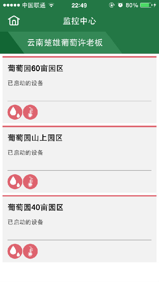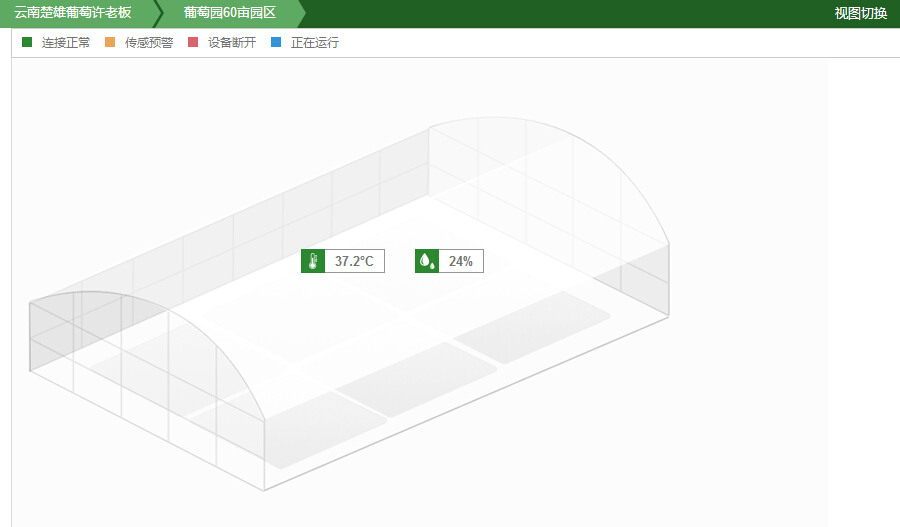 云南楚雄元謀許家君就是這眾多種植戶之一,擁有三個葡萄園區(qū),總規(guī)模約200畝。2013年選擇使用天潤智力智慧農(nóng)業(yè)云平臺,選用的功能也非常簡單——實(shí)時監(jiān)測空氣溫度。