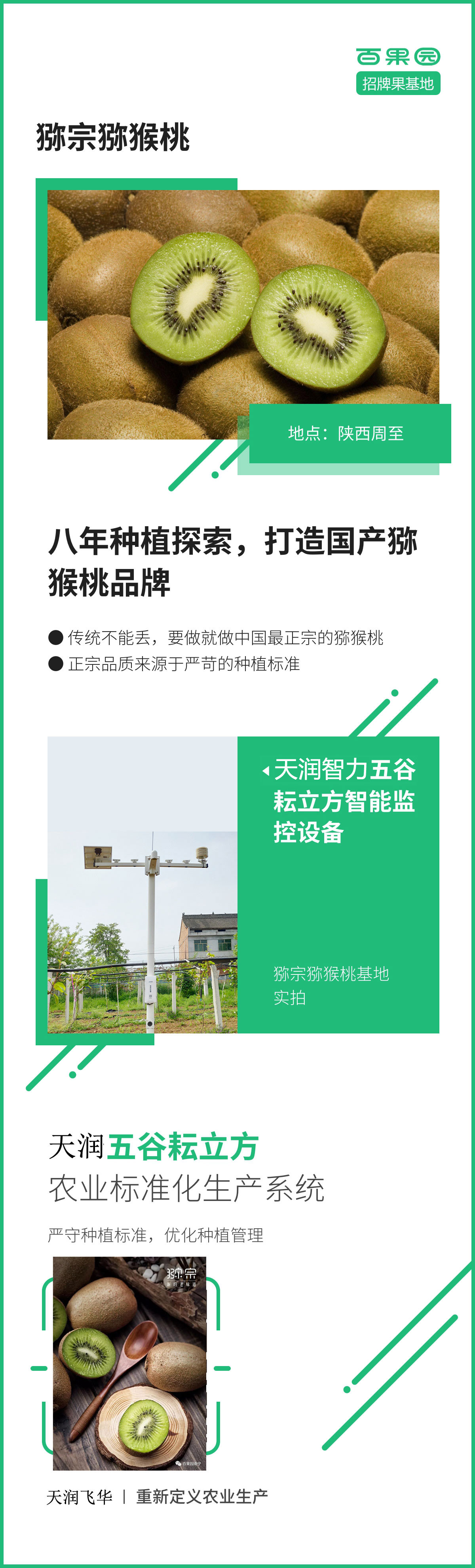 2018年,智慧果業(yè)生產(chǎn)攜手天潤(rùn)智力開(kāi)啟獼宗的智能化指導(dǎo)、標(biāo)準(zhǔn)化種植,利用天潤(rùn)智力“五谷耘立方標(biāo)準(zhǔn)化生產(chǎn)系統(tǒng)”對(duì)獼宗全生產(chǎn)流程的每個(gè)環(huán)節(jié)進(jìn)行信息化、智能化管理,并通過(guò)搭建標(biāo)準(zhǔn)化種植模型,將專(zhuān)家經(jīng)驗(yàn)技術(shù)梳理成一個(gè)個(gè)數(shù)據(jù)與模型,對(duì)獼宗的種植進(jìn)行科學(xué)決策。