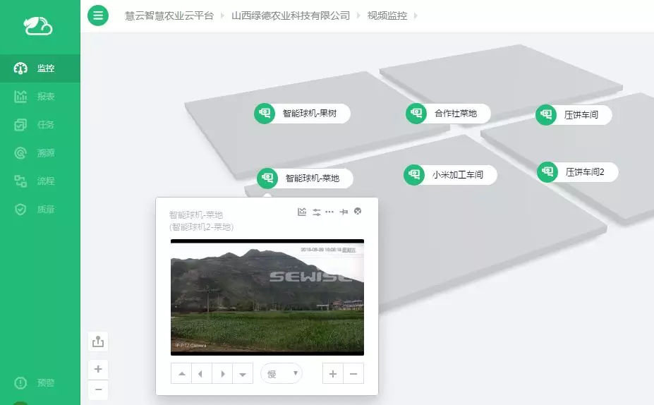 為了更好掌控農(nóng)產(chǎn)品種植以及加工過(guò)程,天潤(rùn)智力在綠德農(nóng)業(yè)的野菜基地、火棘基地以及加工車(chē)間分別安裝了360度高清攝像頭,用戶可以隨時(shí)隨地直觀了解基地情況,對(duì)現(xiàn)場(chǎng)農(nóng)作物生長(zhǎng)情況進(jìn)行實(shí)時(shí)動(dòng)態(tài)、靜態(tài)的監(jiān)控、記錄。用戶即便出門(mén)在外,也可以通過(guò)手機(jī)或者電腦登陸云平臺(tái)實(shí)時(shí)查看作物情況,指導(dǎo)員工開(kāi)展種植與生產(chǎn)活動(dòng)。農(nóng)業(yè)生產(chǎn)變得更加自由自主們更加高效便捷。