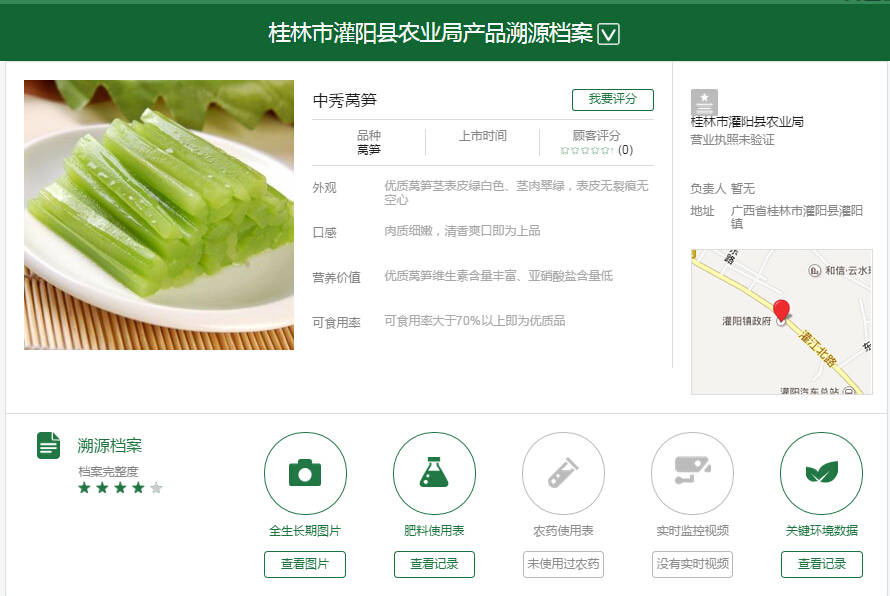 借助“天潤(rùn)智力農(nóng)產(chǎn)品溯源系統(tǒng)”“91溯源平臺(tái)”,灌陽(yáng)縣農(nóng)業(yè)局成功實(shí)現(xiàn)對(duì)葡萄、萵筍、大米三大農(nóng)產(chǎn)品的溯源體系建立,嚴(yán)格監(jiān)控農(nóng)產(chǎn)品農(nóng)資、生產(chǎn)、加工、流通各環(huán)節(jié)。消費(fèi)者通過(guò)掃描產(chǎn)品包裝上的二維碼或者條形碼,即可查看農(nóng)產(chǎn)品的基本信息(產(chǎn)品名稱、生產(chǎn)者、產(chǎn)品品種、產(chǎn)地等)、溯源檔案(全生長(zhǎng)期圖片、肥料使用記錄、農(nóng)藥使用記錄、關(guān)鍵環(huán)境數(shù)據(jù))、產(chǎn)品認(rèn)證信息、產(chǎn)品簡(jiǎn)介等信息,91溯源平臺(tái)給灌陽(yáng)縣農(nóng)業(yè)局的優(yōu)質(zhì)生態(tài)農(nóng)產(chǎn)品一個(gè)展示的平臺(tái),同時(shí)有力地把好農(nóng)產(chǎn)品安全關(guān),將更多優(yōu)質(zhì)、安全的農(nóng)產(chǎn)品品牌“捆綁”,為灌陽(yáng)縣打造灌陽(yáng)“生態(tài)農(nóng)產(chǎn)品品牌群”,打造“可溯源的灌陽(yáng)”打下了堅(jiān)實(shí)的基礎(chǔ)。2014年灌陽(yáng)縣在在縣城大市場(chǎng)蔬菜檢測(cè)室共檢測(cè)蔬菜品種41個(gè),抽檢蔬菜樣品16000個(gè),抽檢合格率達(dá)100%。同時(shí),為確保蔬菜的全程質(zhì)量安全,鄉(xiāng)鎮(zhèn)流動(dòng)檢測(cè)站檢測(cè)蔬菜品種32個(gè),抽檢樣品2869個(gè),抽檢合格率達(dá)100%;蔬菜農(nóng)藥殘留例行檢測(cè),共抽檢樣品1287個(gè),檢測(cè)合格率99.9%。確保了全縣蔬菜從生產(chǎn)到餐桌的安全,使民眾真正吃上“放心菜”。
