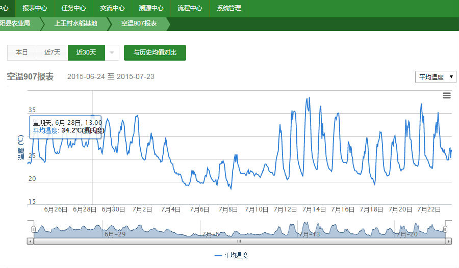 灌陽(yáng)縣農(nóng)業(yè)局在該縣上王村水稻基地、小龍村葡萄基地、中秀村蔬菜基地分別部署了智慧農(nóng)業(yè)的監(jiān)控設(shè)備——空氣溫度傳感器、土壤溫濕度傳感器、土壤PH值傳感器、CO濃度傳感器等物聯(lián)網(wǎng)設(shè)備,以及高清攝像頭、相機(jī)等監(jiān)控設(shè)備,通過(guò)采集器將種植環(huán)境的各種數(shù)據(jù)采集上傳到云端,農(nóng)業(yè)局的農(nóng)技人員及其他管理人員通過(guò)手機(jī)、電腦就可以遠(yuǎn)程監(jiān)控種植現(xiàn)場(chǎng)。系統(tǒng)同時(shí)可以設(shè)定自動(dòng)控制程序,當(dāng)有異常情況出現(xiàn)時(shí),系統(tǒng)就會(huì)發(fā)送警報(bào)至管理員手機(jī),同時(shí)自動(dòng)啟動(dòng)設(shè)備開(kāi)關(guān),自動(dòng)實(shí)現(xiàn)遠(yuǎn)程控制,解除異常狀況。比如,監(jiān)測(cè)到小龍村葡萄基地連續(xù)一周的空氣濕度超過(guò)80%時(shí),系統(tǒng)就會(huì)給葡萄管理員發(fā)送預(yù)警,提醒注意預(yù)防灰霉病等疾。槐O(jiān)測(cè)到溫度接近35℃,系統(tǒng)就會(huì)自動(dòng)打開(kāi)噴霧降溫,防止曬傷葡萄。同時(shí),系統(tǒng)還可以制定自動(dòng)化生產(chǎn)標(biāo)準(zhǔn)流程,這對(duì)農(nóng)業(yè)局在全區(qū)進(jìn)行各種作物的種植示范推廣具有非常大的作用。從源頭上保證產(chǎn)品品質(zhì),為“生態(tài)農(nóng)業(yè)品牌”奠定堅(jiān)實(shí)的基礎(chǔ),是灌陽(yáng)縣農(nóng)業(yè)局的戰(zhàn)略目標(biāo)第一步。