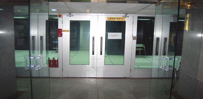 (機房的門均應采用專業(yè)防火門。鋁塑板飾面與玻璃的清透構(gòu)成。)