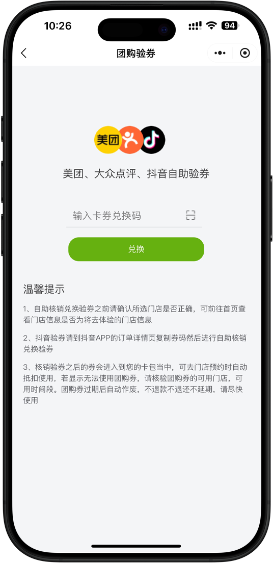 支持美團、大眾點評、抖音核銷