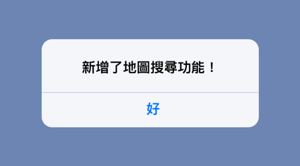 有的時候警告框只是用來傳達訊息,比如在說明新功能的時候,會用到只有一個按鈕的警告框。我們可想想在這種時候該如何設(shè)計按鈕的文字。一般來說,使用「OK(好)」雖然沒有問題,但在不同的語境中也有可能需要改成其他文字。