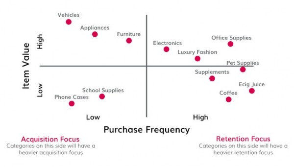 通常來(lái)說(shuō),當(dāng)你的商品越靠近右側(cè),你的客戶留存策略就越重要。然而,千萬(wàn)不要因?yàn)檫@樣就忽略了持續(xù)獲取新的顧客。