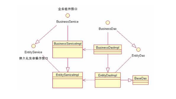 業(yè)務(wù)邏輯層采用了接口的技術(shù),使得具體的業(yè)務(wù)邏輯實現(xiàn)代碼和接口進行解耦,而前端的Action只需要通過一個定位器,就可以獲得具體的接口進行調(diào)用。