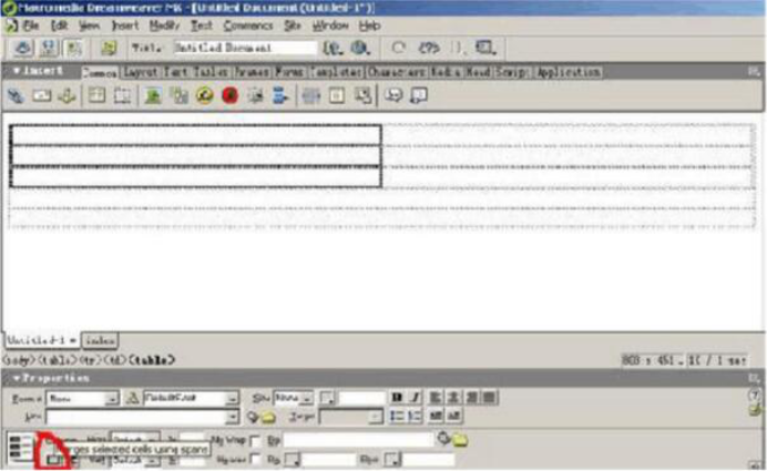 插入表格的時(shí)個(gè)要注意對(duì)比原h(huán)tm文件中的內(nèi)容,思考為什么這樣做;接下來在第二行中插入一個(gè)二行二列的表格,按上面的方法合并左邊的格子,并在右邊格子的第一行插入一個(gè)一行五列的表格如圖示:
