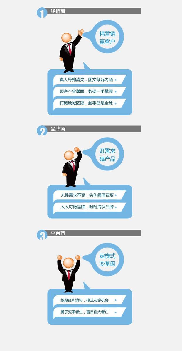 一般而言,如果品牌廠商在電商時代做直營成本依然過高,則還會借助經(jīng)銷商模式實現(xiàn)共贏共生。尤其是倚重配套服務(wù)的行業(yè)(例如家居家裝、大家電、餐飲等),遍布各地的中小經(jīng)銷商依然有生存空間。需要積極轉(zhuǎn)變思維,配合品牌商的電商時代戰(zhàn)略舉措,發(fā)揮自己的角色能量。