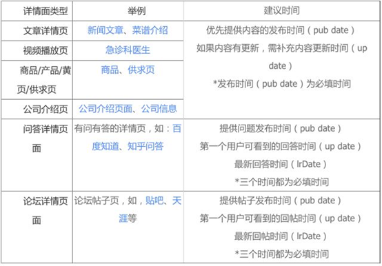 詳情頁主要是內(nèi)容頁面,包括文章詳情頁,視頻播放頁等,這類頁面在發(fā)布后,大部分更新較少,而用戶值關注發(fā)布時間。當然如果是問答,論壇等具有交互的詳情頁比較特殊,就需要提供更多的內(nèi)容。