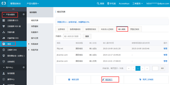 阿里云如何轉(zhuǎn)入域名