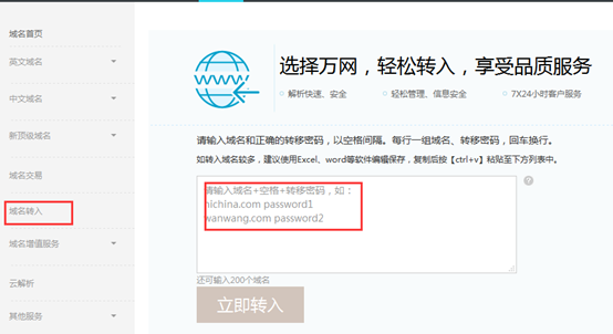 1、真實(shí)存在的域名才可進(jìn)行域名轉(zhuǎn)入;