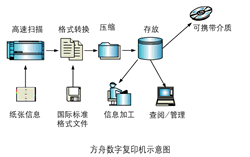通過(guò)“數(shù)字復(fù)印機(jī)”配置的高速掃描設(shè)備及掃描軟件可將傳統(tǒng)的紙介質(zhì)信息以每分鐘15—75頁(yè)(正反雙面)的速度進(jìn)行快速掃描,使文檔數(shù)字化工作變得輕松簡(jiǎn)單。