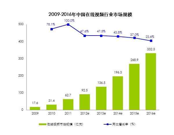在國內(nèi),據(jù)iUserTracker監(jiān)測數(shù)據(jù)顯示,在線視頻在2012年第二季度已經(jīng)超越搜索服務(wù)和社區(qū)交友,成為中國用戶規(guī)模最大的網(wǎng)絡(luò)服務(wù),2012年5月用戶規(guī)模達(dá)到4.2億。艾瑞的分析報(bào)告指出,2012年視頻行業(yè)整體市場規(guī)模達(dá)到92.5億元,同比2011年增長了47.6%,而且未來還會(huì)以30%以上的速度繼續(xù)增長。
