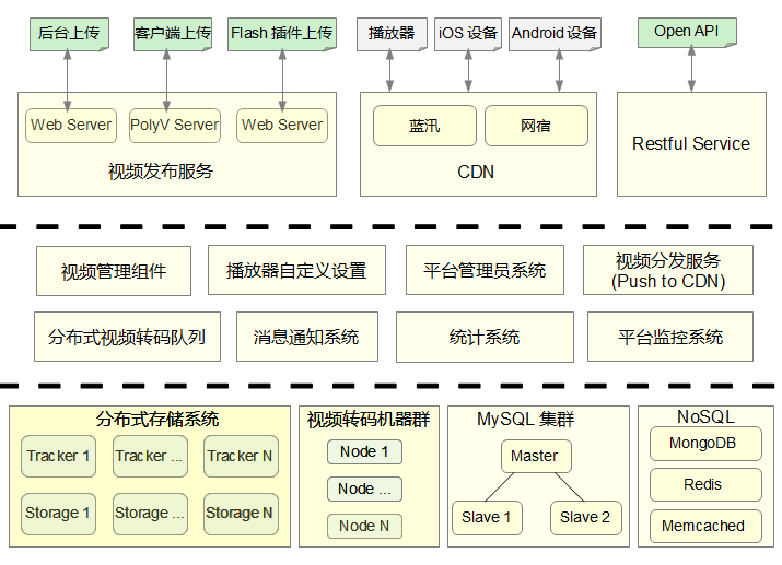 在線視頻云服務(wù)平臺(tái)需要提供視頻發(fā)布、視頻轉(zhuǎn)碼、視頻存儲(chǔ)、視頻管理、播放器設(shè)置、多終端播放、廣告系統(tǒng)、統(tǒng)計(jì)系統(tǒng)、視頻加密等基礎(chǔ)核心功能。