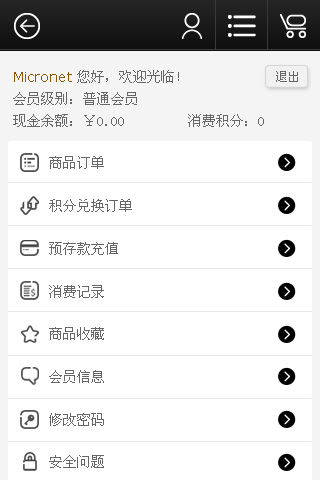 可通過設定產(chǎn)品的購買和促銷獲得積分然后在線進行兌換。會員卡功能